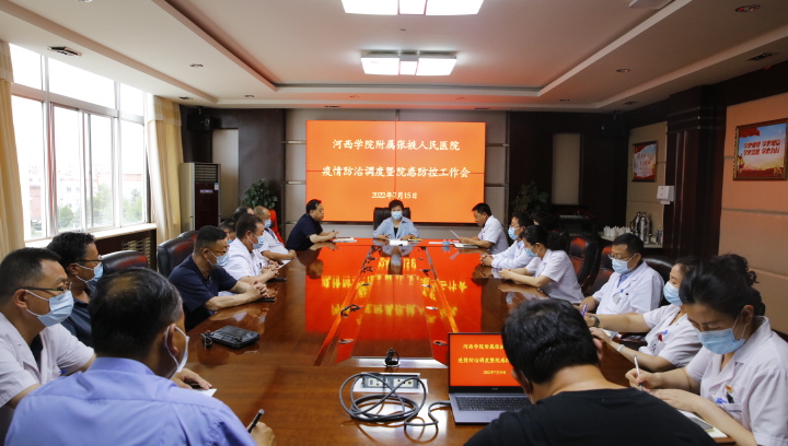 7月15日上午,附属医院召开第四次疫情防控调度会,医院领导班子、疫情防控领导小组成员和相关重点部门负责人参加会议。河西学院党委常委、副校长强梅参加并指导会议。