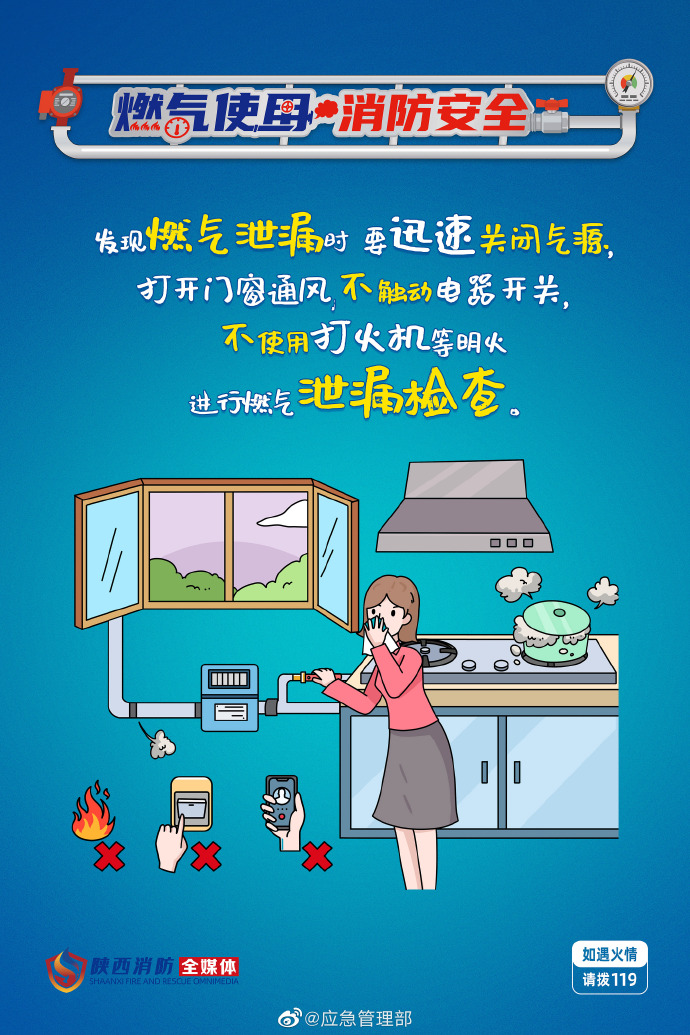 燃气使用安全提示 来源:中国应急信息网 作者:中国应急信息网 发布时间:2023-10-16 点击数: 次 【字体:小 大】 燃气已成为生活中必不可少的能源,燃气安全关乎千家万户。安全没有小事,生命重于泰山,使用燃气时有哪些注意事项?发现燃气泄漏时要怎么办?戳图了解↓↓ 分享到: 打印正文 关闭本页